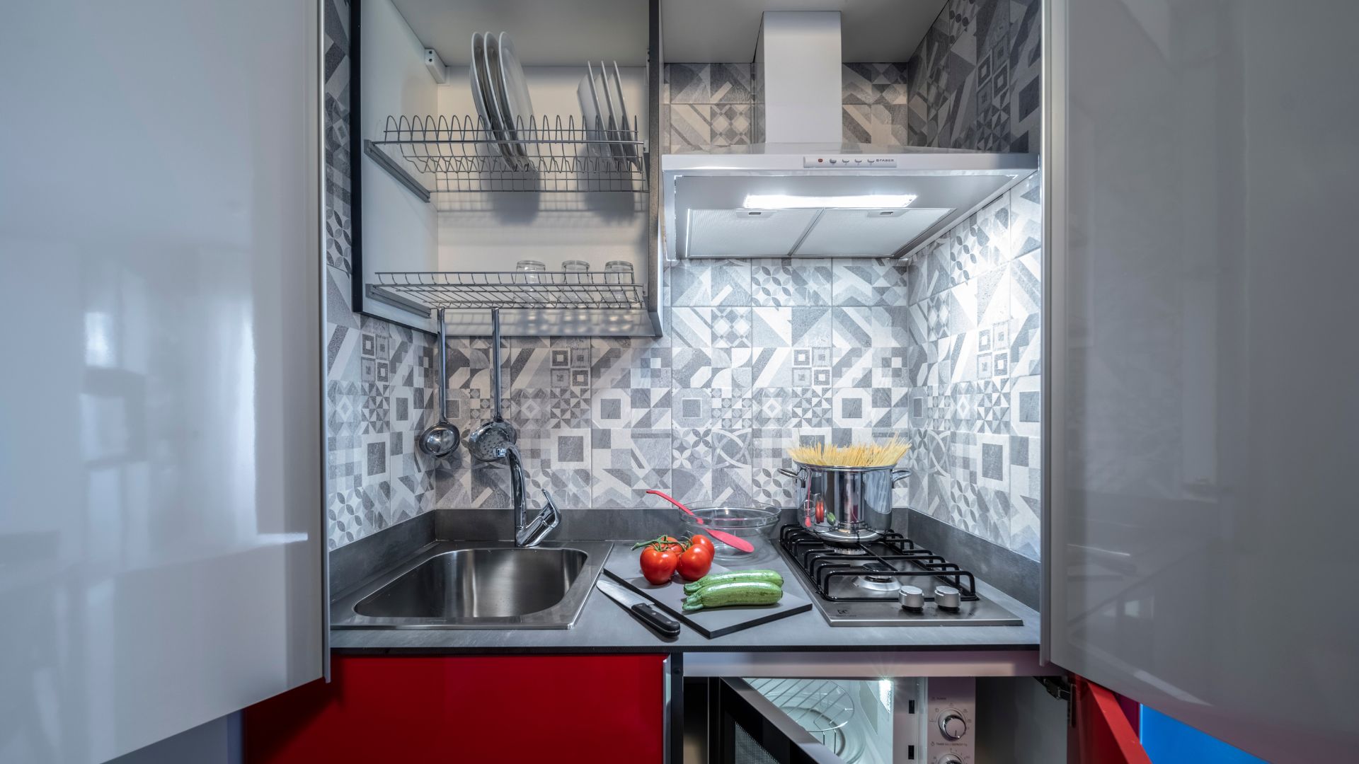 Angolo Cottura Attrezzato: cucina completa di forno a microonde e frigorifero capiente, perfetta per gestire i pasti in totale autonomia.